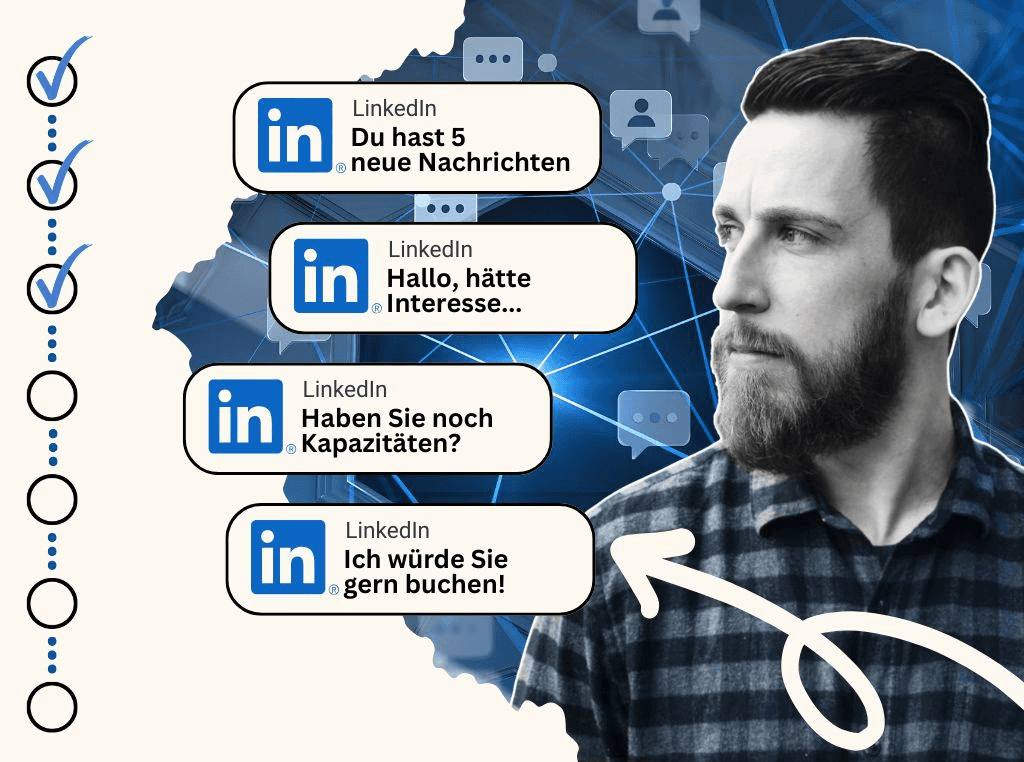 Mit Leidenschaft, einem pragmatischen Ansatz und verkaufspsychologischen Methoden bringt dir Blueprint 2.0 ein fundiertes System, um endlich die richtigen Kunden über LinkedIn zu gewinnen.